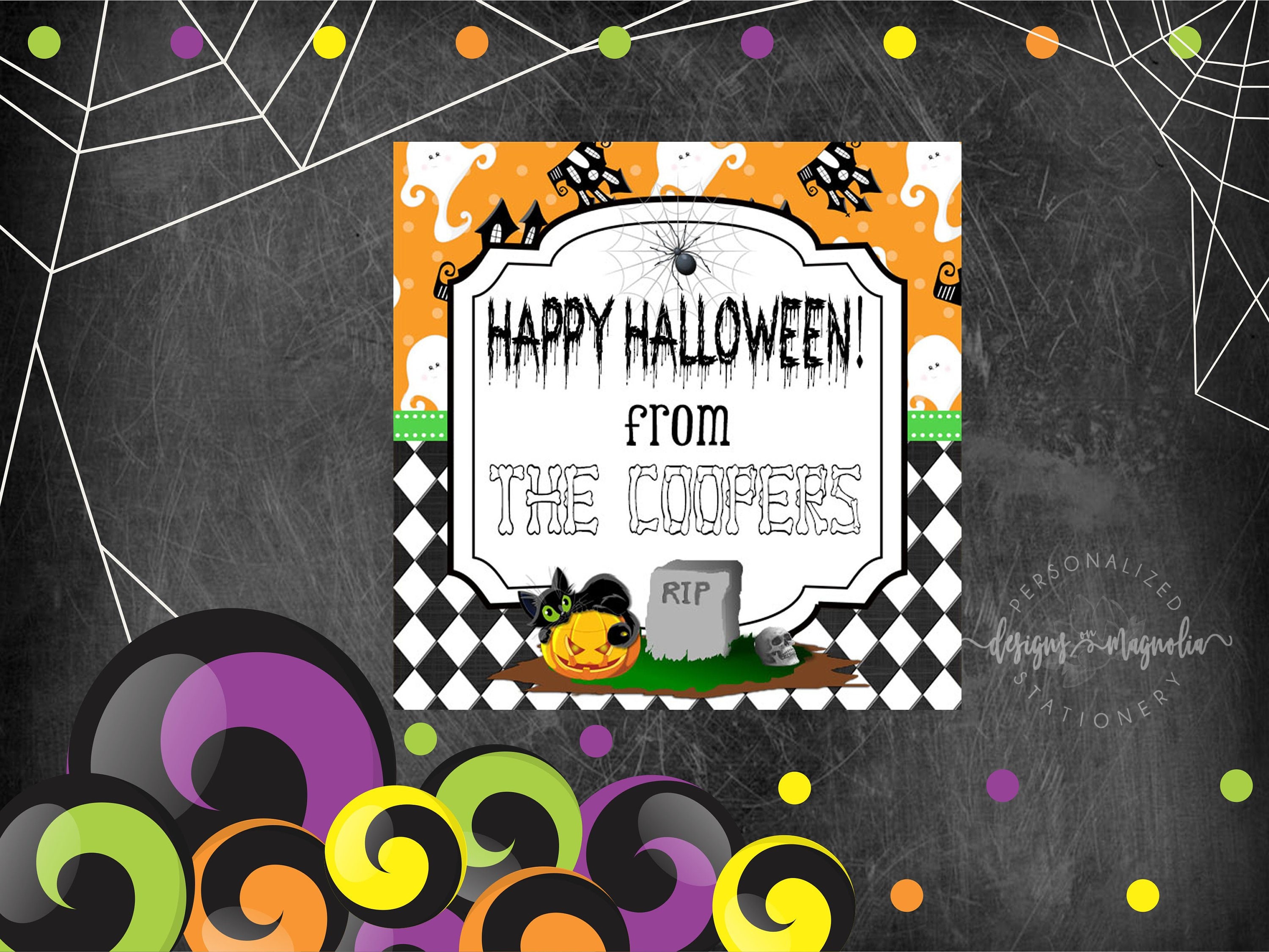 Personalized Halloween Favor Stickers - Set of 20 Custom ... Personalized Halloween Favor Stickers - Set of 20 Custom Trick or Treat Themed Treat Bag Labels (HW126). Brand: Oh Baby! Stickers & More.Brand: Oh Baby! Stickers & MoreMaterial: Stickers Rating: 4.6 · 72 reviews