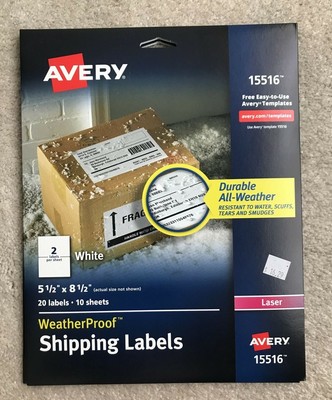 Avery 15516 Weatherproof Shipping Labels 5.5" x 8.5", 20 Labels -10 Sheets 72782155162 | eBay