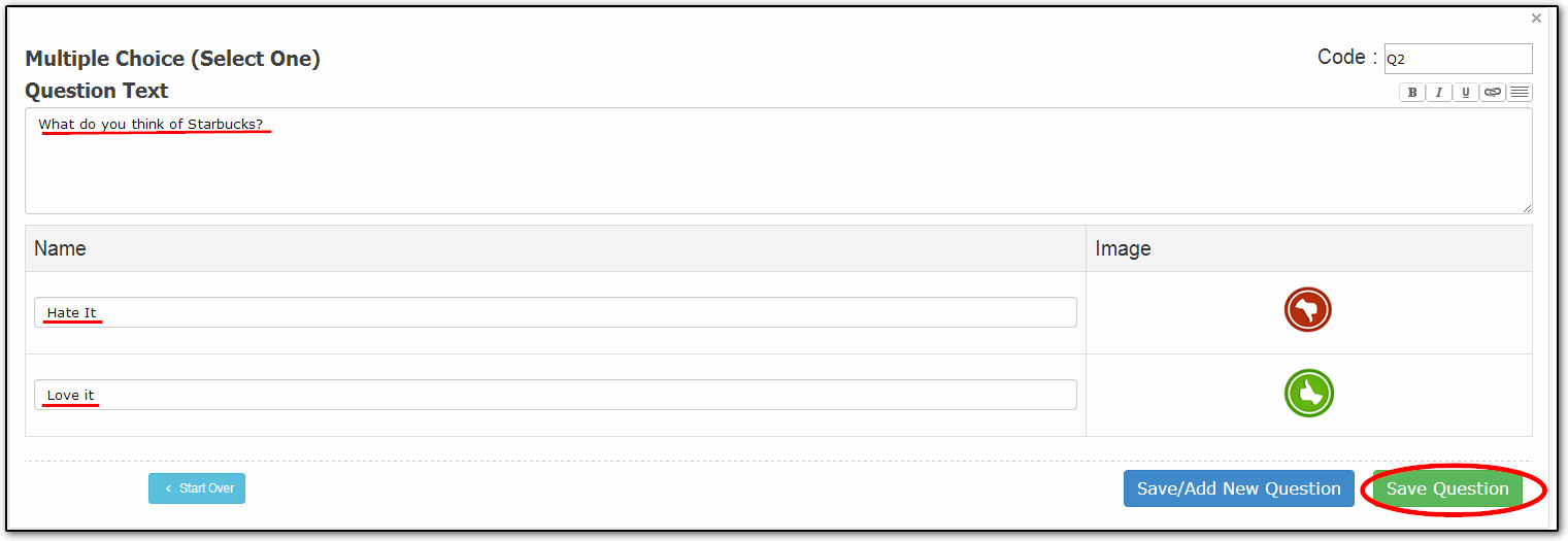 Star Rating Question | SurveyMonkey To set up a Star Rating question: Drag and drop Star Rating into your survey from the BUILDER section of the sidebar. Enter your question text. Adjust the settings under the Edit and Options tab. Click Save. Question Settings Under the Edit tab, you can adjust the following settings specific to the Star Rating question. Colors