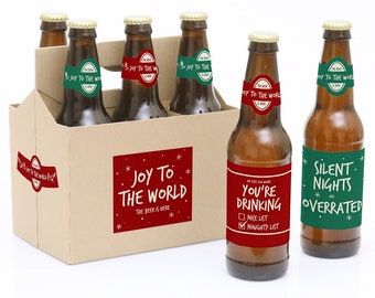 Red and Green Christmas Beer Labels - 6 Beer Bottle Labels & 1 Carrier - Funny Holiday Gifts - Christmas Gifts for Women and Men