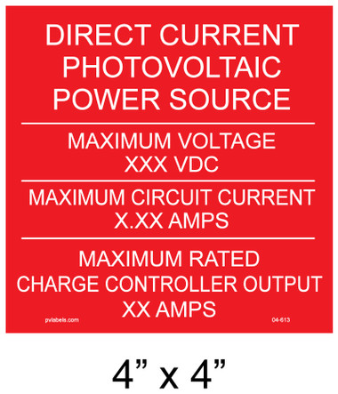 2" x 4" | Photovoltaic Power Source | Custom Solar System Labels ... 2" x 4" - Custom Solar System Labels. Per NEC 690.4 (F), NEC 690.31 (E) (4) Place on all DC source markings. * NEC 690.31 (E) (4) The labels or markings shall be visible after installations. Photovoltaic power circuit labels shall appear on every section of the wiring system that is separated by enclosures, walls, partitions, ceilings, or floors.