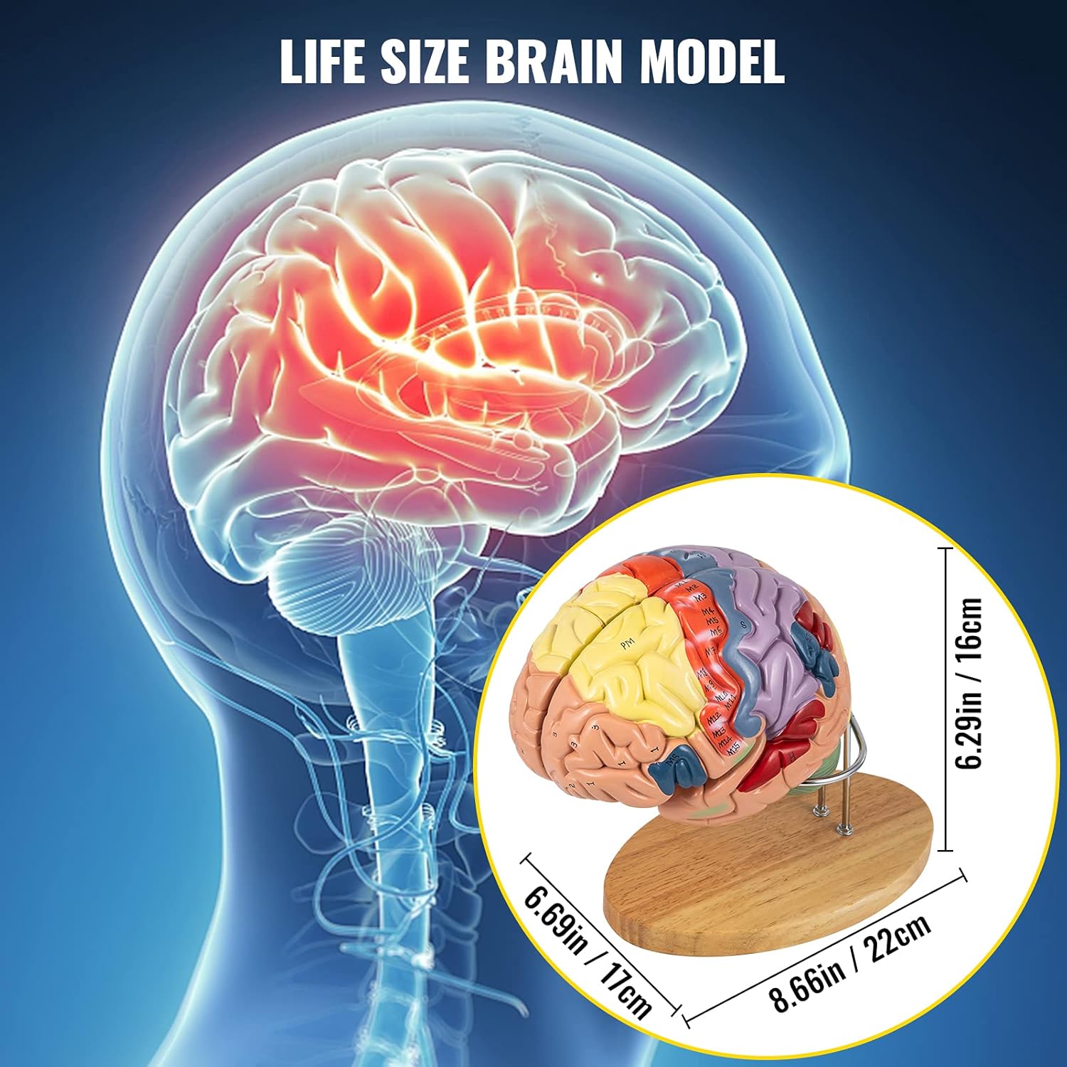 VEVOR Human Brain Model Anatomy 4-Part Model of Brain w/Labels & Display Base Color-Coded Life Size Science Classroom Display